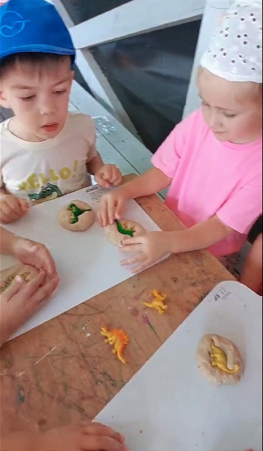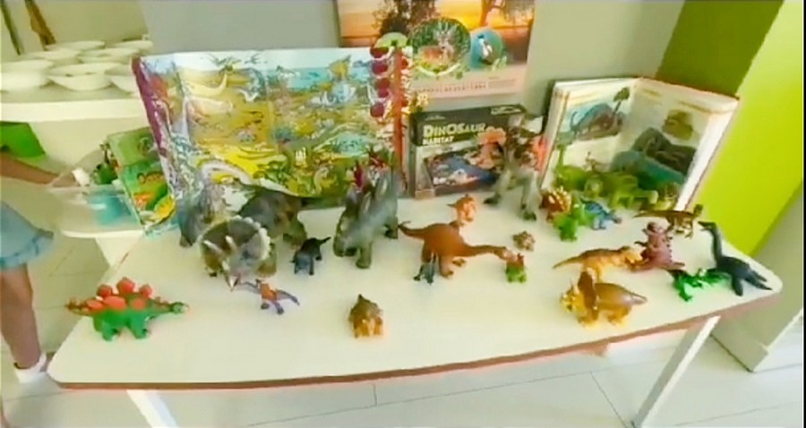 В течение недели ребята познакомились с историей появления и исчезновения этих удивительных существ, уточнили виды и названия ящеров. В творческих мастерских дети раскрашивали картинки с динозаврами, лепили их из пластилина и солёного теста, смотрели интересные мультфильмы и конечно же играли с такими прекрасными существами, организовав мини-музей «Мир динозавров».