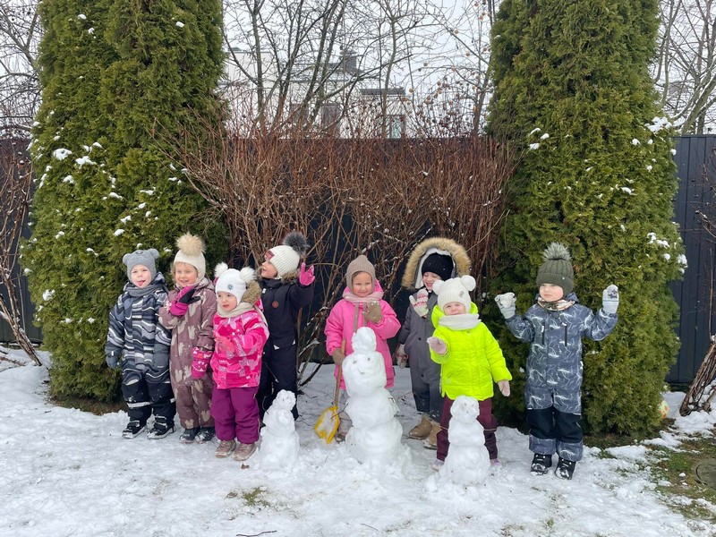 Не забывают ребята и о традиционных зимних забавах: они лепят снеговиков, придавая каждому из них уникальный стиль и характер.