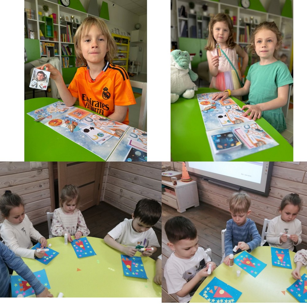 На тематических занятиях ребята рассмотрели иллюстрации, картинки, фотографии с изображением звёзд и планет, читали стихи, отгадывали загадки на тему "Космос". Узнали, кто такие космонавты и на чём они летают в космос.
