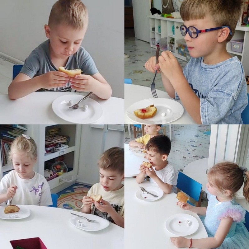 Не обошлось и без знакомства с белорусской кухней! Маленькие гурманы с удовольствием попробовали национальные блюда: ароматные печёные яблоки с клюквой, наполненные витаминами и теплом, а также золотистые драники, покорившие сердца всех без исключения.
