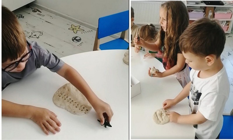 - создание слепков: каждый ребенок смог создать свой собственный слепок "следа динозавра" на память об этой удивительной неделе.
