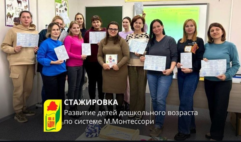 С 11 октября по 18 октября 2025 года на базе Института повышения квалификации и переподготовки состоялась стажировка по учебной программе развитие детей дошкольного возраста по системе М.Монтессори под руководством старшего преподавателя Холецкой Натальи Михайловны, в которой приняла участие наш воспитатель Янковская О.В. В ходе занятий стажёры изучили теоретические основы педагогики М.Монтессори: сенсорные упражнения, игры и задания для детей дошкольного возраста, классификацию математических материалов и основные способы работы с ними; специфику развития звукового строя речи детей в педагогической системе М.Монтессори и многое другое.