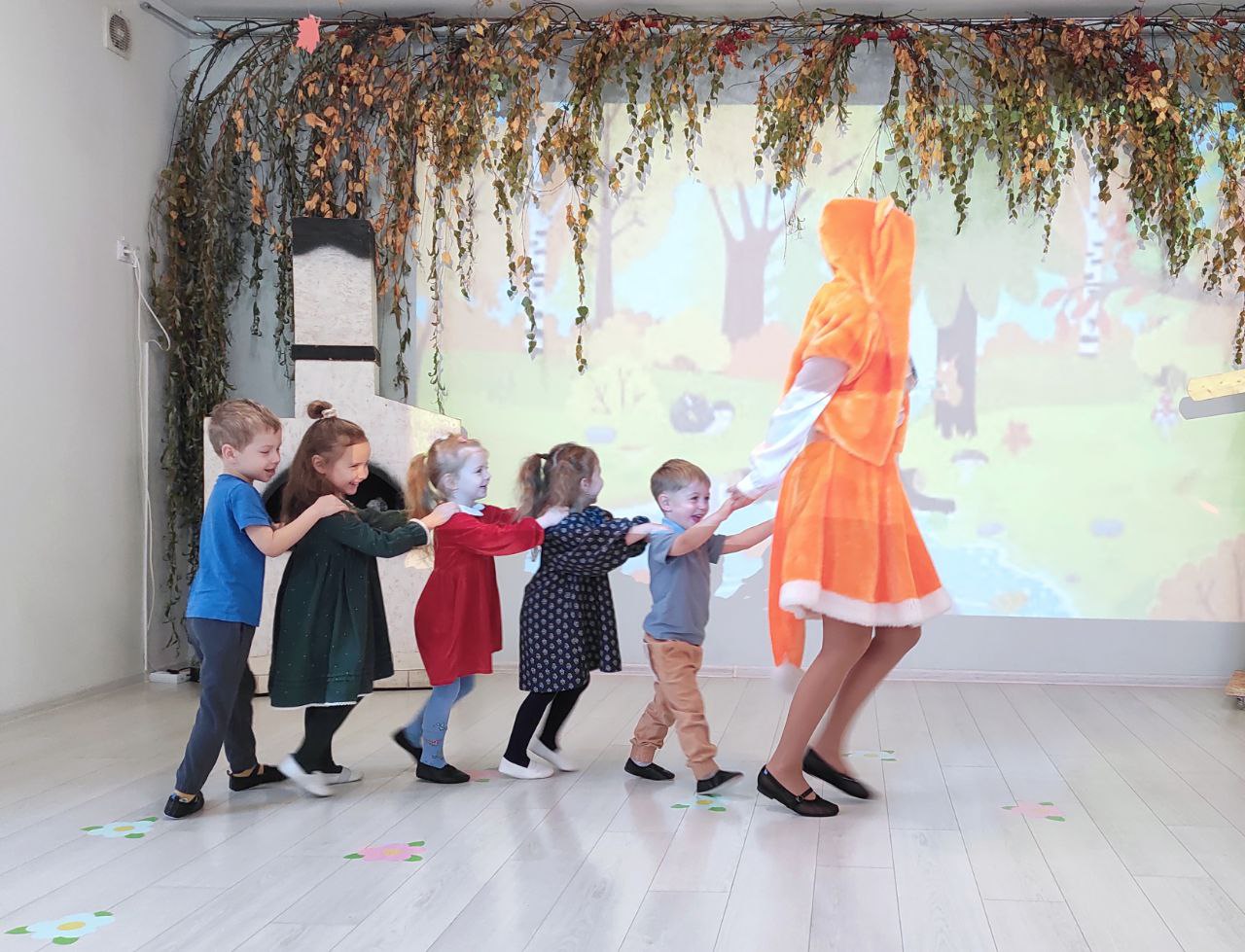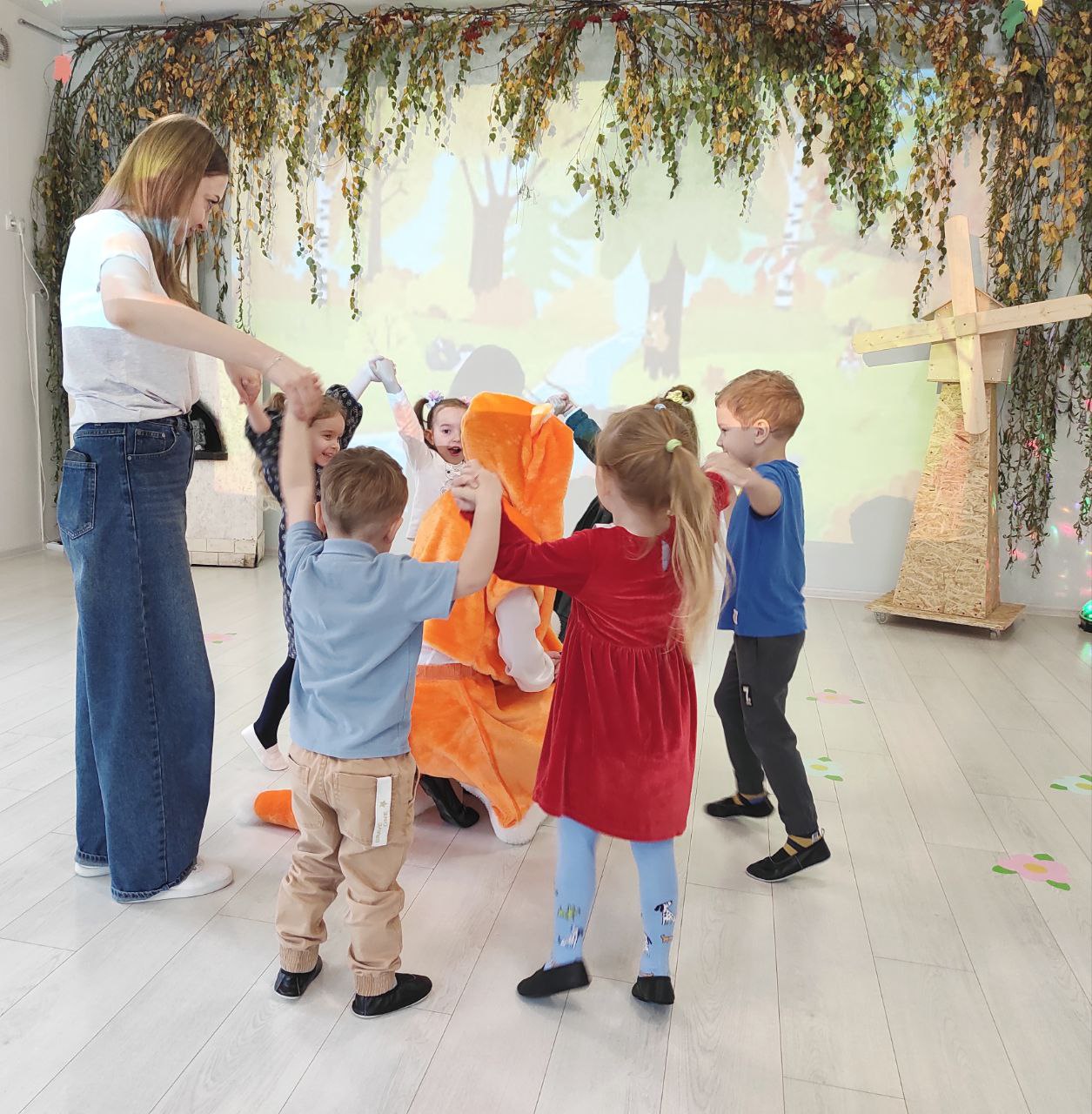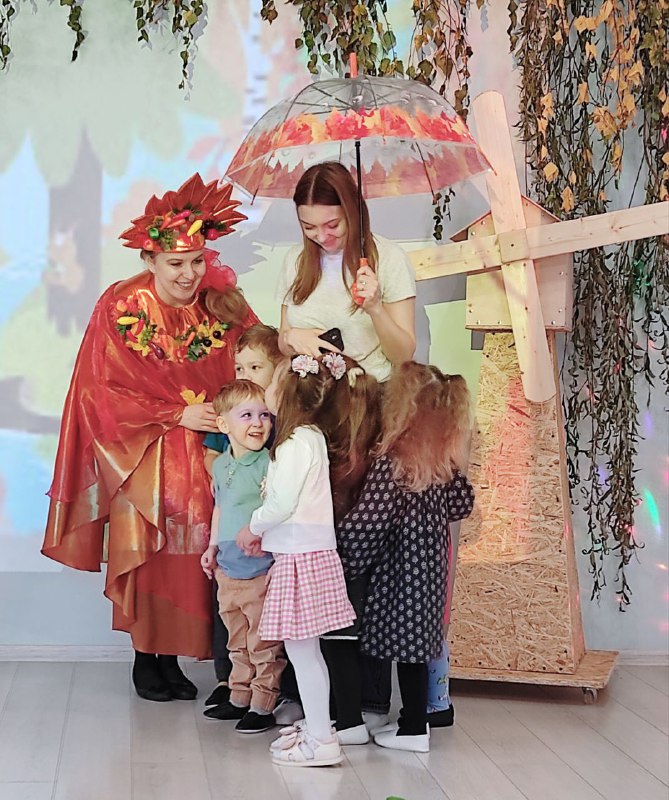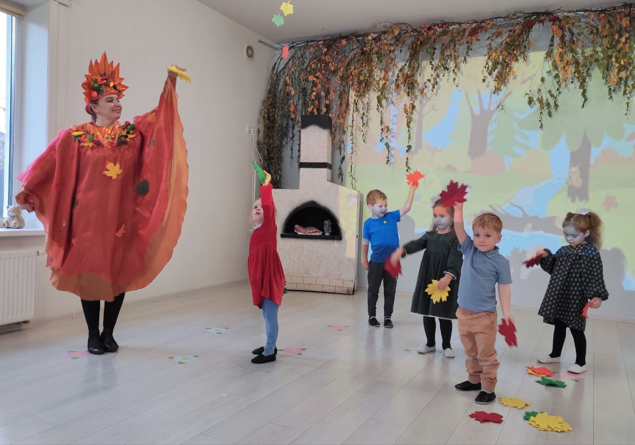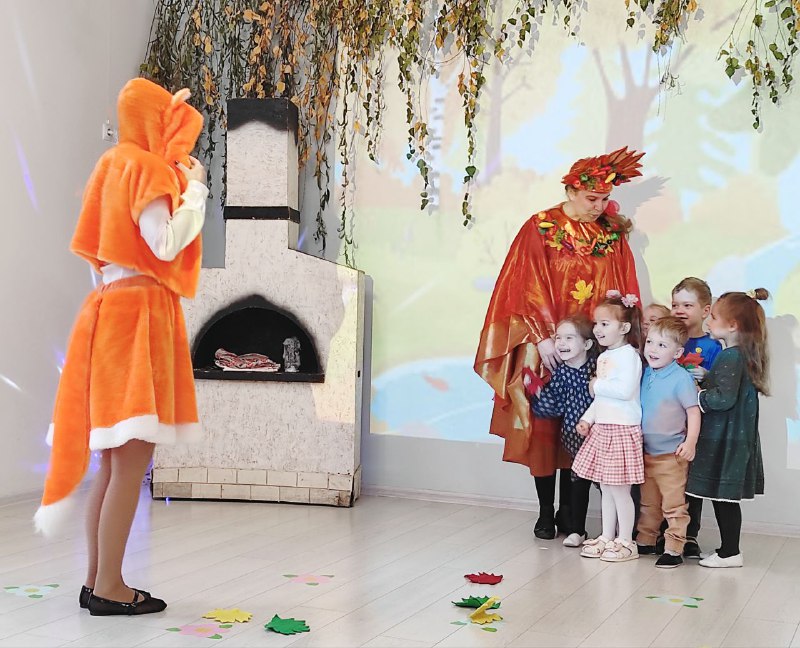 В гости к ребятам пришли сказочные гости — Осень и Лисичка. Они принесли с собой атмосферу тепла и радости, которая наполнила зал. Вместе с Осенью ребята отправились в увлекательное путешествие по осеннему лесу, где играли в веселые игры, танцевали и пели.