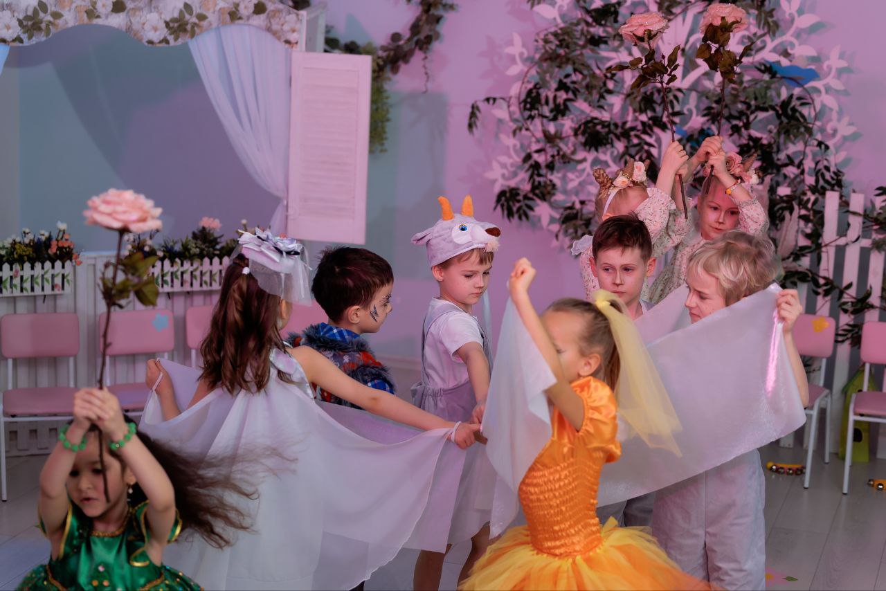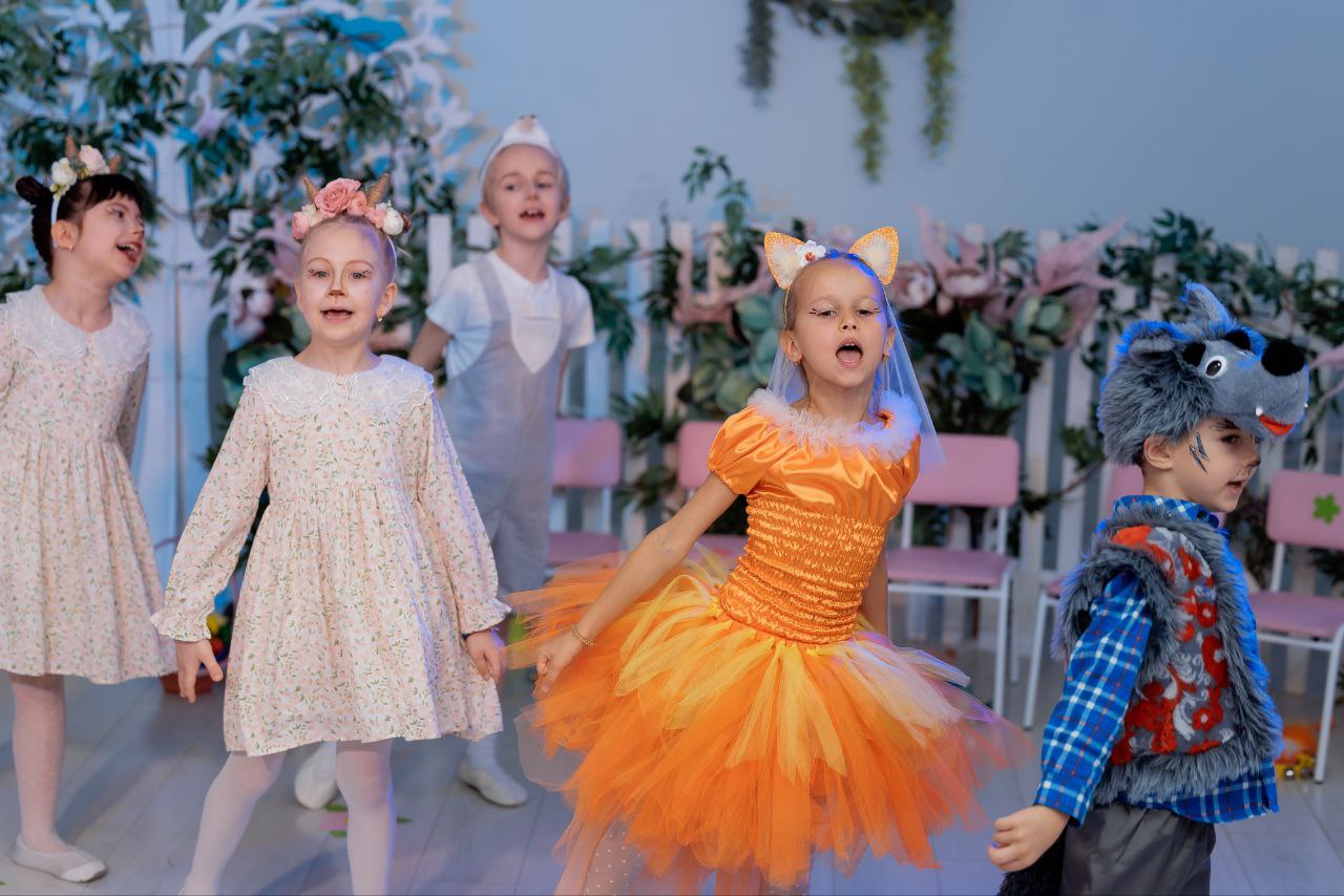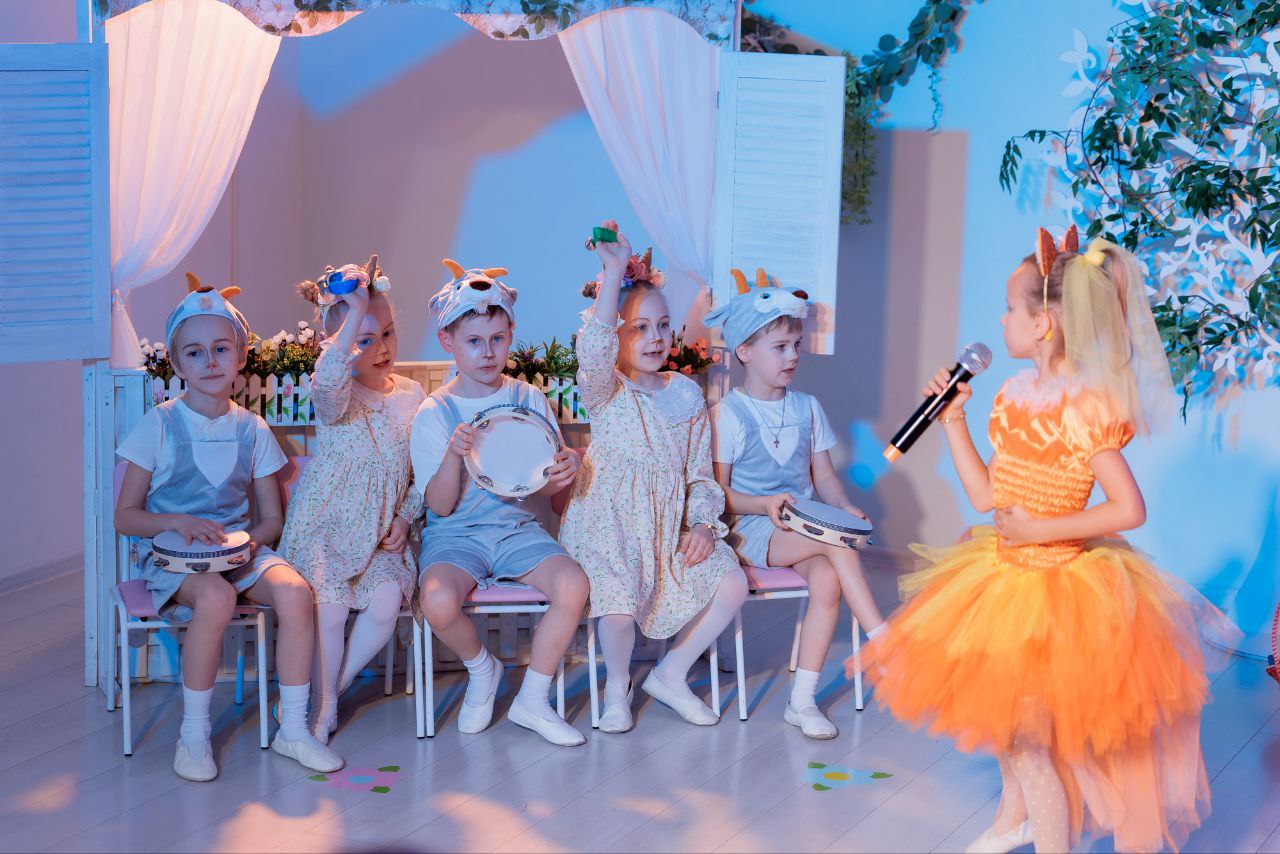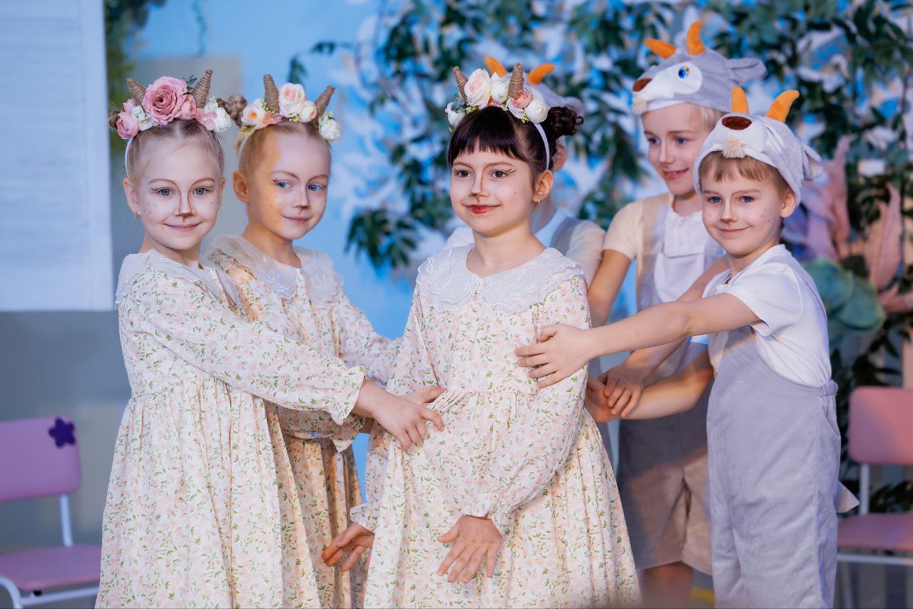 Маленькие артисты, перевоплотившиеся в отважных козлят, умную лису, весёлых ёлочек и коварного волка, с блеском в глазах начали свое выступление. Юные актеры с вдохновением исполнили песни, танцы и с выразительной игрой рассказали всеми любимую сказку.