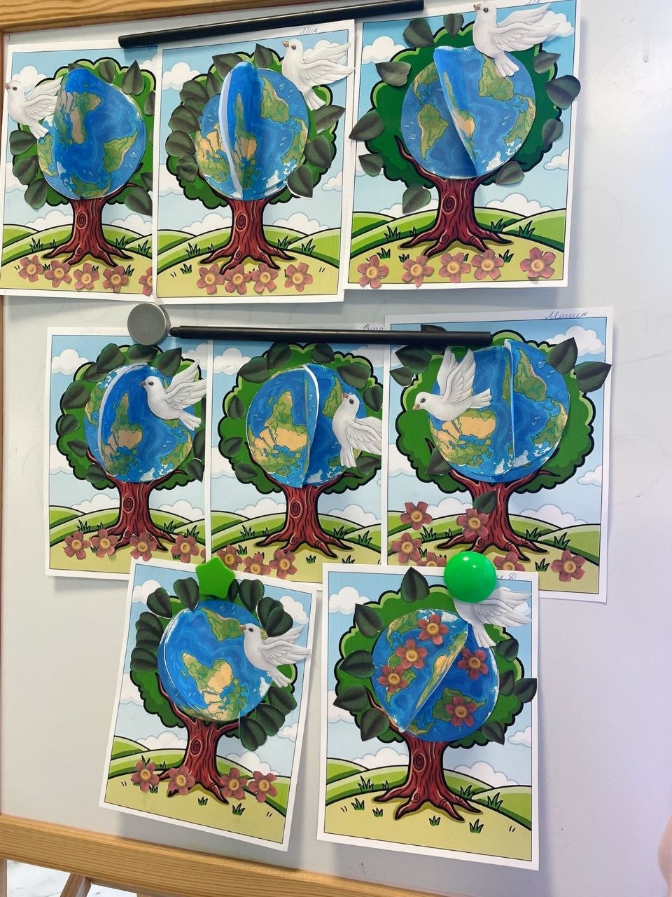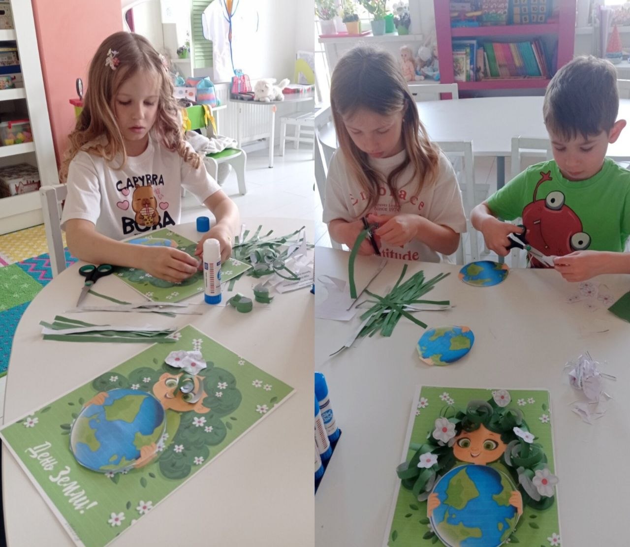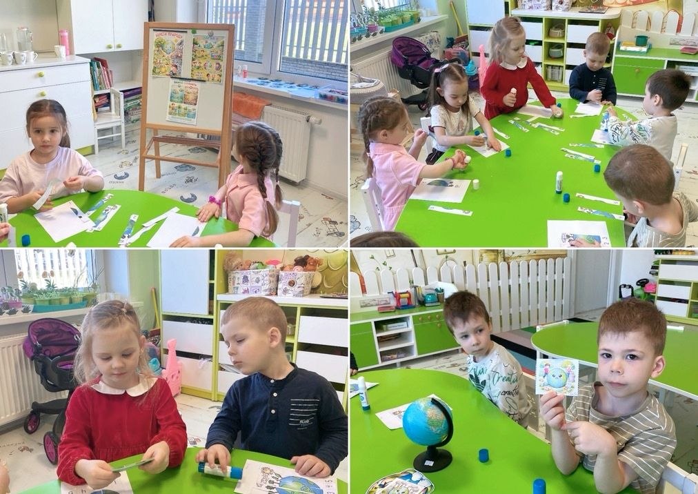 Не обошлось и без творчества. Ребята с интересом взялись за изготовление аппликаций, посвященных Дню Земли. Под руководством воспитателей, дошкольники создавали яркие и красочные работы. На аппликациях расцвели зеленые деревья, распустились цветы, появились голубые реки и счастливая планета, окруженная заботливыми детскими ладошками. Каждая работа – это маленький, но очень значимый призыв к бережному отношению к нашей Земле.