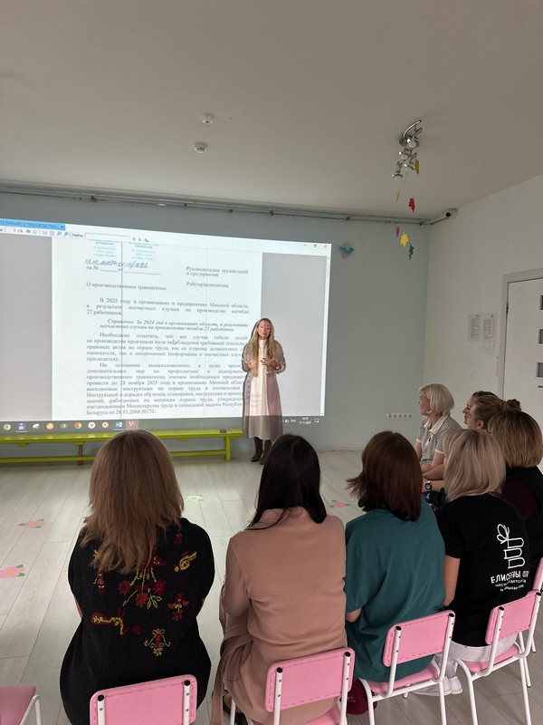 В нашем дошкольном учреждении безопасность и благополучие каждого сотрудника – это не просто слова, а приоритет, который мы стараемся воплощать в жизнь каждый день. В соответствии с письмами Минского областного объединения профсоюзов от 27.10.2025 №8-7/907 «О проведении внепланового инструктажа по охране труда» директор Мешкова Елена Михайловна довела до сведения сотрудников предприятия письмо начальника Минского областного управления Депортамента государственной инспекции труда Министерства труда и социальной защиты Республики Беларусь Турибрина К.В. от 27.10.2025 №01-17/1082 «О производственном травматизме»
